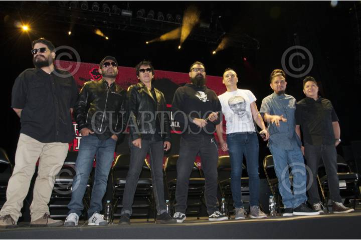 CIUDAD DE MÉXICO, 26SEPTIEMBRE2016.- La emblemática banda de ská, Panteón Rococó, aununcio su regreso a los escenarios el próximo 3 de diciembre en el Palacio de los Deportes. La agrupcación dio a conocer que está listo su nuevo material discográfico. Durante la rueda de prensa hablaron sobre el caso de los 43 estudiantes desaparecidos de la Escuela Rural "Raúl Isidro Burgos", la noche del 26 de septiembre de 2014, en Iguala. Guerrero, y se sumaron al reclamo de justicia. Los músicos resaltaron que estos hechos los inspiraron para la creación musical de este albúm. FOTO: PAULINA NEGRETE /CUARTOSCURO.COM