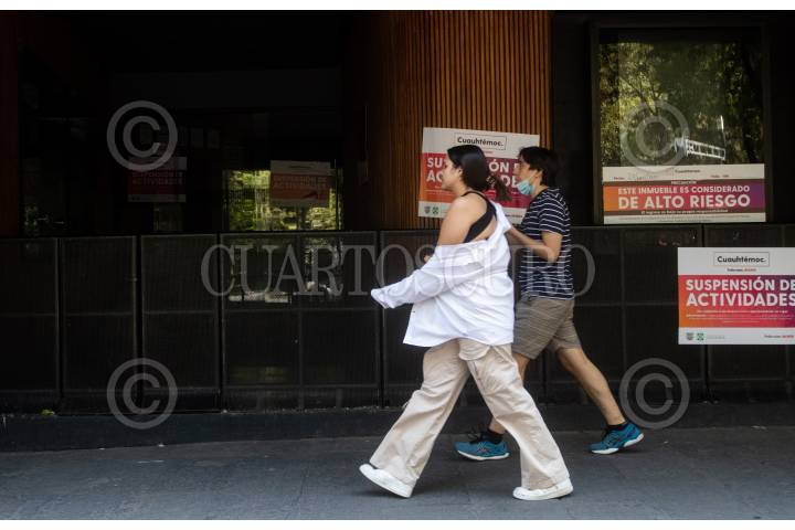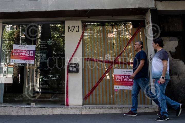Autoridades de la alcaldía Cuauhtémoc realizaron una inspección en "El Plaza Condesa", ubicado sobre las calles de Nuevo León y Tamaulipas, donde colocaron sellos de suspensión de actividades por ser inmueble de alto riesgo