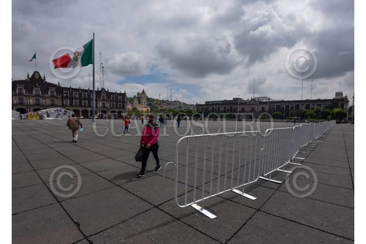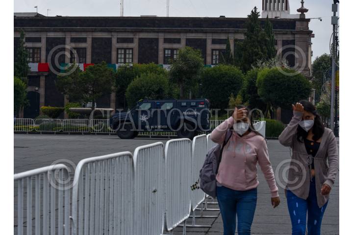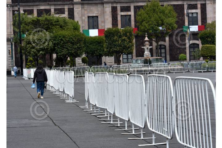 Instalan vallas alrededor de la Plaza de los Mártires previo a los festejos patrios, en donde se llevará a cabo una feria de seguridad, y evitar que posibles manifestantes ocupen este espacio.