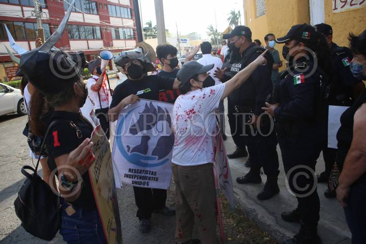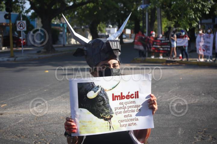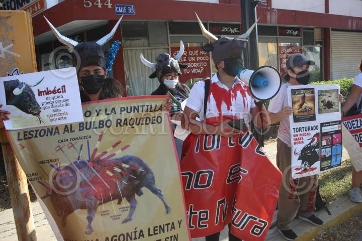 Un grupo de personas que se oponen a las corridas de toros se manifestaron en la Plaza de Toros Mérida, para exigirle al legislativo una ley que prohíba este espectáculo.