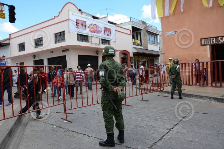 SAN CRISTÓBAL DE LAS CASAS, CHIAPAS, 14FEBRERO2016.- En los alrededores de la plaza de la paz se afinan los últimos detalles de logística y seguridad para la visita de mañana del Papa Francisco. FOTO: ELIZABETH RUIZ /CUARTOSCURO.COM