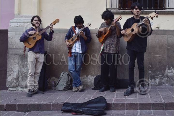 GUANAJUATO, GUANAJUATO, 14OCTUBRE2017.- Diversos conjuntos musicales se instalan sobre la calle Avenida González Obregón a la altura de la Plaza de la Paz, para poder obtener ganancias económicas ante la constante llegada de visitantes para la 45 edición del Festival Internacional Cervantino. FOTO: MARIO JASSO /CUARTOSCURO.COM