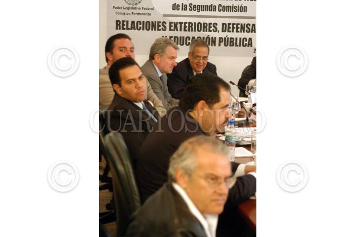 MÉXICO D.F. 21AGOSTO2007.-El Senador del PAN, Santiago Creel Miranda durante la ratificación de Gabriel Jimenéz Remus, como Embajador Extraordinario y Plenipotenciario de México ante la República de Cuba, esto en las instalaciones de Senado de la República.En la Imagen es acompañado por el Senador Federico Doring, los diputados del PAN, Cruz Pérez Cuellar, Hector Larios y Juan josé Rodriguez Prats. FOTO:GUILLERMO PEREA/CUARTOSCURO.COM