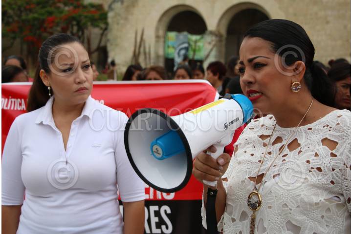 OAXACA, OAXACA, 09MAYO2018.- Saimy Pineda Velasco, quien fuera registrada por el Partido del Trabajo como candidata a la presidencia municipal de san Pedro Pochutla y después sustituida por Víctor Cruz quien busca reelegirse en el cargo, se manifestó este miércoles en la ciudad de Oaxaca al considerar que esta siendo víctima de violencia política contra las mujeres. En compañía de diversas féminas y la dirigente del Partido de Mujeres Revolucionarias (PMR), Guadalupe Díaz Pantoja se sacaron sangre y con ella pintaron diversas consignas en una manta. Pineda Velasco acusó que a Pineda Velasco y al comisionado Nacional del PT, actual senador con licencia y candidato a diputado federal, Benjamín Robles Montoya de haber falsificado documentación para reemplazarla. FOTO: ARTURO PÉREZ ALFONSO/ CUARTOSCURO.COM