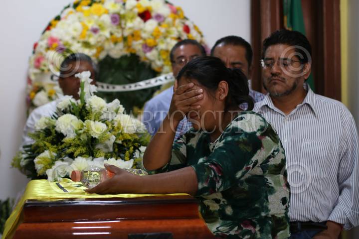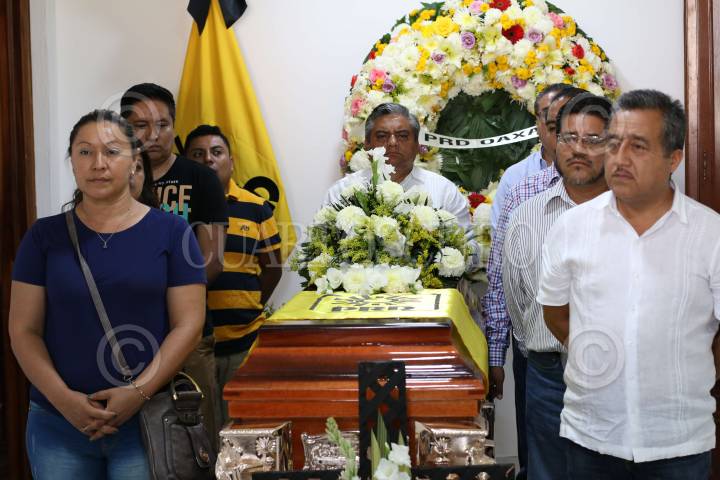 OAXACA , OAXACA, 28JUNIO2018.- La mañana de este jueves falleció Ever Román Juárez, quien resultará herido el pasado martes cuando atentaron en contra del candidato a la presidencia municipal de San Pedro Pochutla, Raymundo Carmona Laredo. El cuerpo de Román Juárez fue llevado la tarde de este día a las instalaciones del Comité Directivo Estatal del partido donde militantes y familiares le rindieron un homenaje. FOTO: ARTURO PÉREZ ALFONSO/ CUARTOSCURO.COM