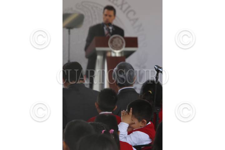XOCHITEPEC, MORELOS, 19AGOSTO2013.- El presidente Enrique Peña Nieto presentó, por primera vez en su administración, la apertura del nuevo ciclo escolar 2013-2014. Alumnos de la escuela primaria Miguel Alemán en Xochitepec presenciaron el evento en donde se dieron cita el presidente nacional del SNTE, Juan Díaz de la Torre, quien refrendó su apoyo a la reforma educativa; y el gobernador del estado de Morelos, Graco Ramírez Abreu, entre demás funcionarios. FOTO: BERENICE FREGOSO / CUARTOSCURO.COM