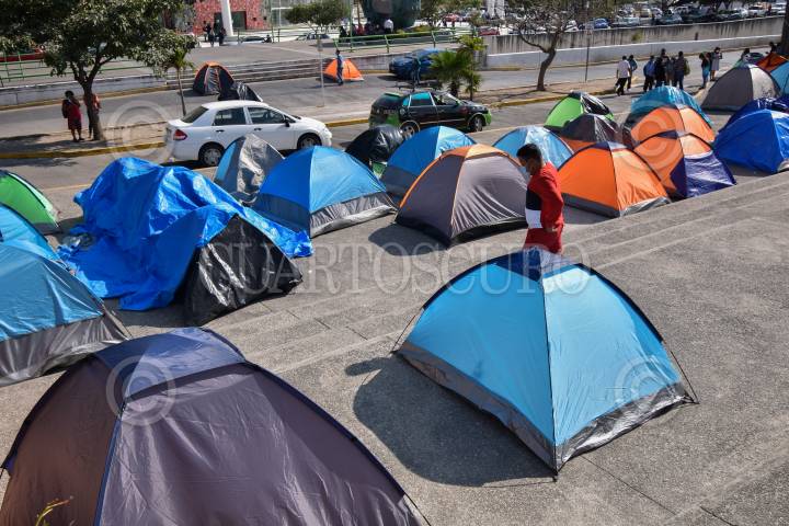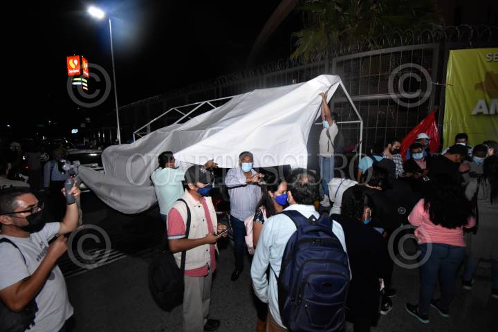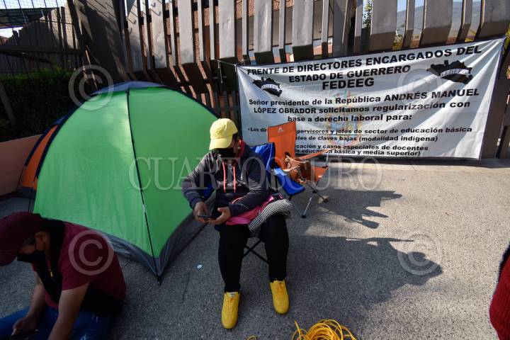 Luego de tres días de protesta sin recibir atención, maestros que fungen como directores encargados de escuela determinaron escalar el nivel de su manifestación, bloqueando todos los accesos de la sede del poder ejecutivo y la vialidad en las calles aledañas al edificio.