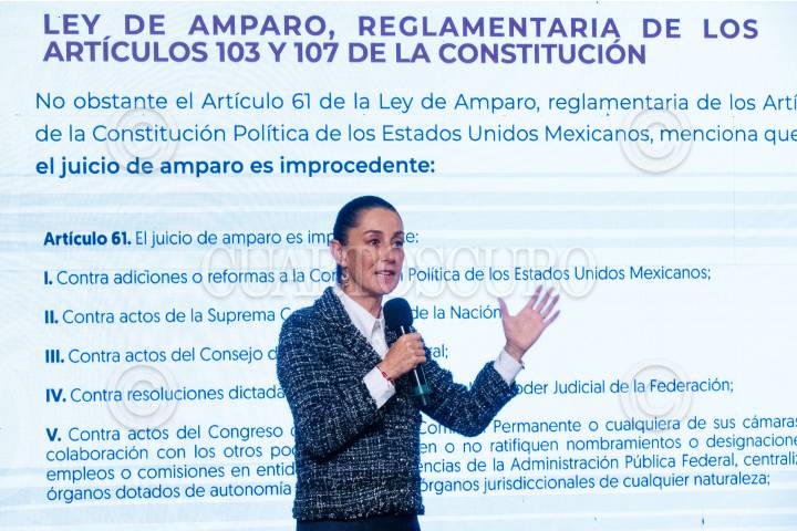 CIUDAD DE MÉXICO, 21OCTUBRE2024.- Claudia Sheinbaum Pardo, Presidenta de México, explica que la Ley de Amparo no aplica a cambios constitucionales, durante su explicación de porqué no está en desacato al no "eliminar" el decreto constitucional de la Reforma al Poder Judicial en el Diario Oficial de la Federación como lo está determinando una suspensión de una jueza, esto durante la mañanera. FOTO: MOISÉS PABLO/CUARTOSCURO.COM