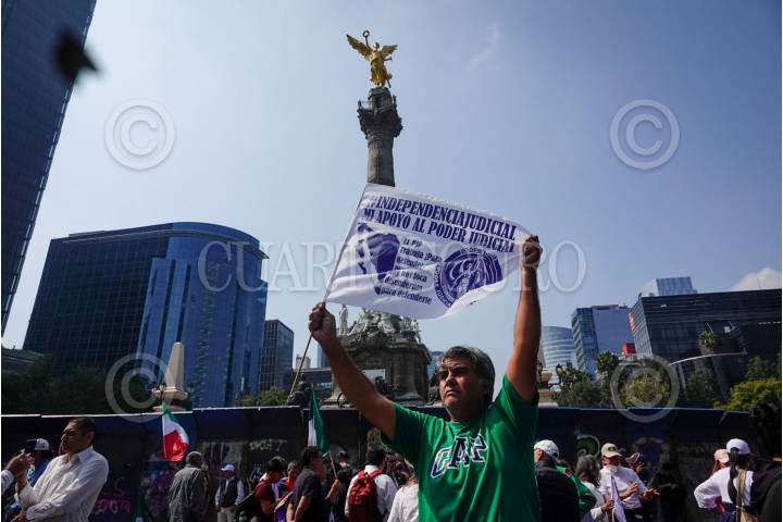 CIUDAD DE MÉXICO, 03NOVIEMBRE2024.- Trabajadores del Poder Judicial de la Federación y Movimiento Generación del 24, se manifestaron frente al Ángel de la Independencia, para exigir la división de poderes a favor de la democracia y en defensa de la Ley el estado del derecho. FOTO: MAGDALENA MONTIEL VELÁZQUEZ/CUARTOSCURO.COM