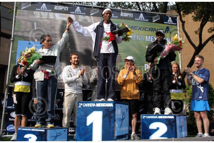 MÉXICO, D.F., 29JULIO2007.- Se llevó a cabo la 2a Carrera Mexicana organizada por una aerolínea mexicana. Los ganadores de la competencia en la rama femenil fueron: Anna Jelagat de Kenia terminó en primer lugar; Alice Ndirangu, también de Kenia, finalizó segunda, y la mexicana Julissa Sandoval, en terceró. FOTO: ISAAC ESQUIVEL/CUARTOSCURO.COM