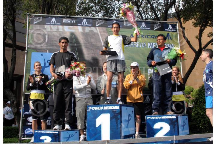 MÉXICO, D.F., 29JULIO2007.- Se llevó a cabo la 2a Carrera Mexicana organizada por una aerolínea mexicana. Los ganadores de la competencia en la rama varonil fueron: Jonnatan Morales, primer lugar; Andrés Juárez, segundo, y Gerardo Morales, tercero. FOTO: ISAAC ESQUIVEL/CUARTOSCURO.COM