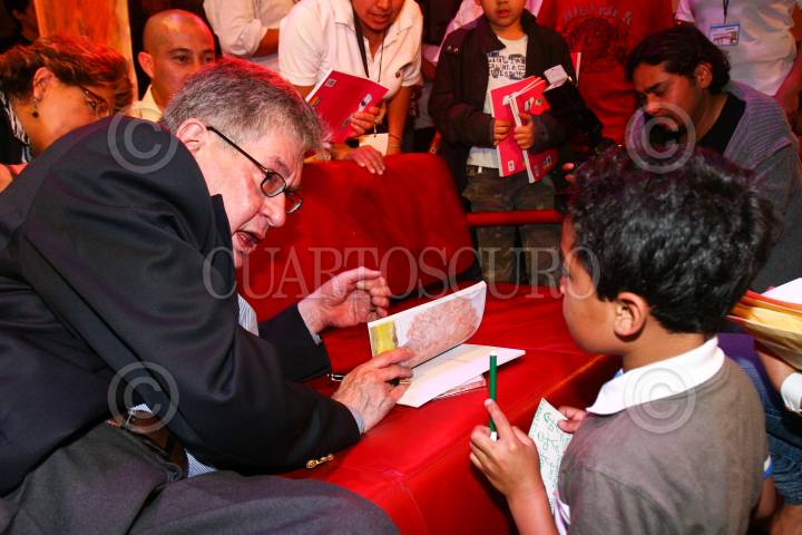 MÉXICO, D.F., 24MARZO2010.- El poeta José Emilio Pacheco presentó el libro "Celebración de la palabra: Eduardo Lizalde y José Emilio Pacheco para niños", en la biblioteca José Vasconcelos, donde firmó libros a niños. FOTO: ISAAC ESQUIVEL/CUARTOSCURO.CO
