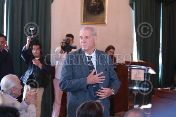 CIUDAD DE MÉXICO, 11SEPTIEMBRE2024.- Juan Hernández Ramírez ofrece unas palabras luego de ser galardonado con la Medalla Bellas Artes. FOTO: DANIEL AUGUSTO/ CUARTOSCURO.COM
