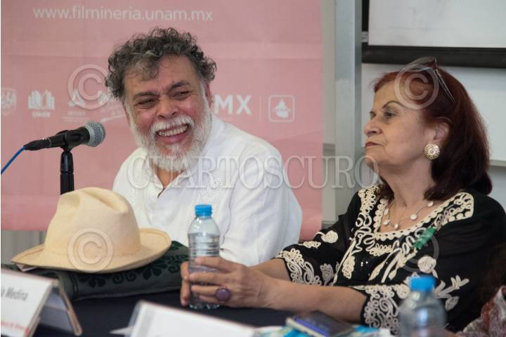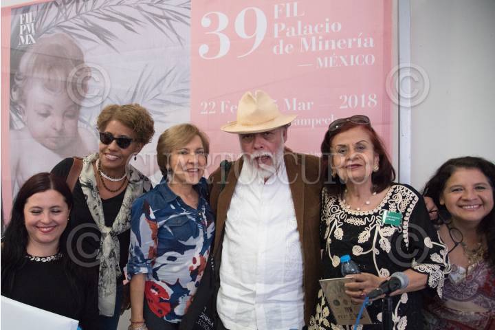 CIUDAD DE MÉXICO, 03MARZO2018.- El poeta jalisciense, Ricardo Yañez, y la poeta Patricia Medina, fueron homenajeados esta tarde en la 39 Feria Internacional del Libro (FIL) en el Palacio de Minería como parte del evento "Poéticas de Latitudes". FOTO: MARIO JASSO /CUARTOSCURO.COM