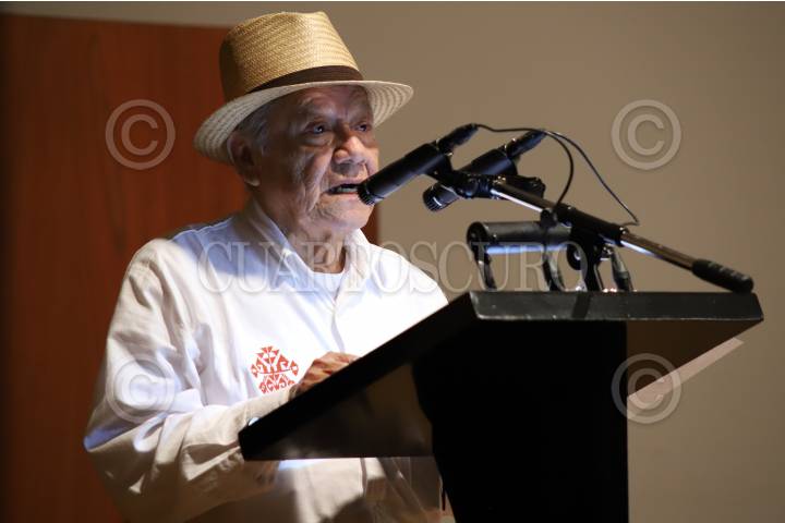 CIUDAD DE MÉXICO, 03MARZO2018.- El poeta jalisciense, Ricardo Yañez, fue homenajeado esta tarde en la 39 Feria Internacional del Libro (FIL) en el Palacio de Minería como parte del evento "Poéticas de Latitudes". FOTO: MARIO JASSO /CUARTOSCURO.COM