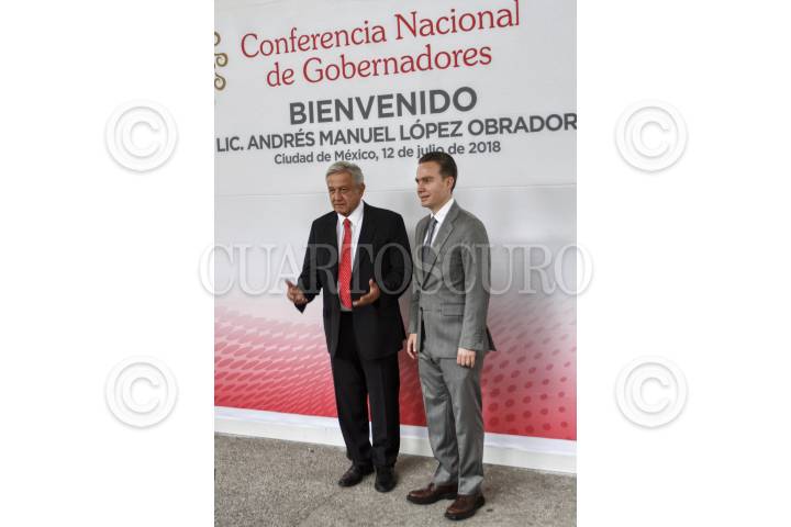 CIUDAD DE MÉXICO, 11JULIO2018.- Andrés Manuel López Obrador, candidato ganador de la elección para Presidente de la República, se reunió con gobernadores de la Conago, encabezados por su presidente Manuel Velasco, gobernador de Chiapas, en el Colegio de Ingenieros, al sur de la ciudad. FOTO: ISAAC ESQUIVEL /CUARTOSCURO.COM