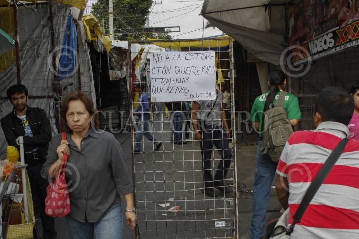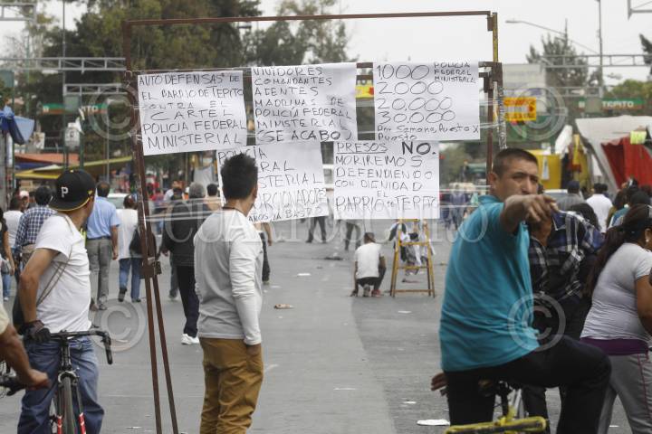 MÉXICO, D.F., 29ENERO2014.- Comerciantes del barrio de Tepito bloquearon el Eje 1 Norte en su tramo de Reforma y avenida del Trabajo para denunciar supuestas extorsiones por parte de la Policía Federal Ministerial. FOTO: MOISÉS PABLO /CUARTOSCURO.COM