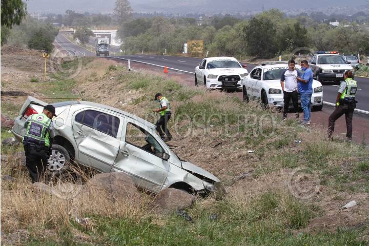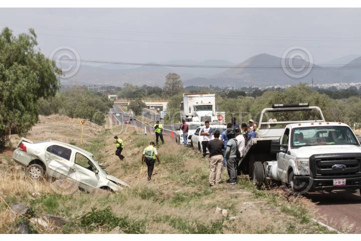 Un automóvil quedó destruido tras accidente en carriles laterales de la autopista Ecatepec-Pirámides.
