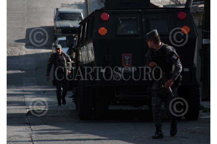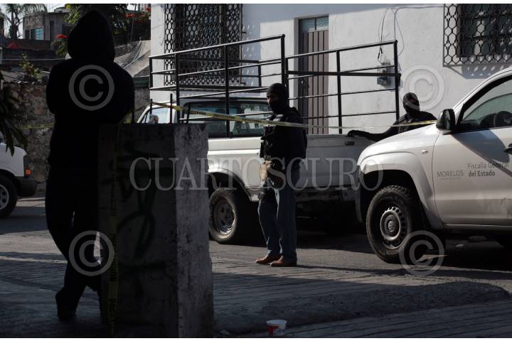 TEMIXCO, MORELOS, 30NOVIEMBRE2017.- Cuatro mujeres, un joven de 17 años, y un bebé de dos fueron abatidos en un operativo que la Policía Morelos llevó a cabo en la madrugada de este jueves en la vivienda marcada con el número 238 de la calle Francisco I Madero, en la colonia Rubén Jaramillo; además, se reportó que dos niños de 3 y 4 años fueron heridos de gravedad por lo que son atendidos en el hospital de la zona. Vecinos narraron que a las dos de la madrugada se escucharon detonaciones de arma de fuego, así como movimiento de camionetas. Esta mañana, fueron asegurados cuatro vehículos y una cuatrimoto. Personal del Ejército y de la Policía Federal está en el área mientras la Fiscalía se encargó de obtener evidencias y realizar el levantamiento de los cadáveres. FOTO: MARGARITO PÉREZ RETANA /CUARTOSCURO.COM