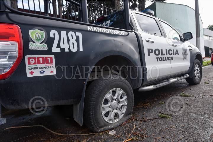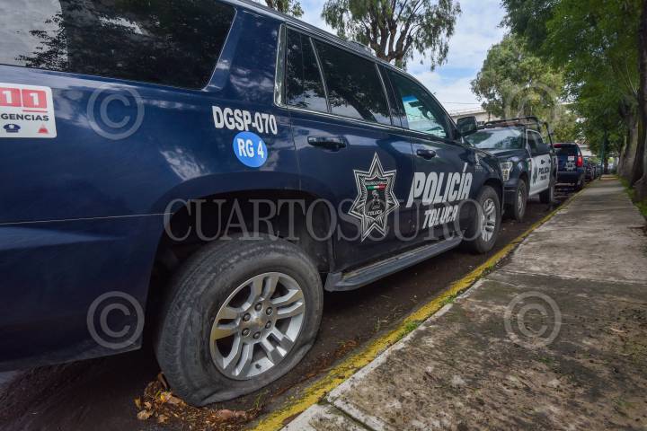 En redes sociales vecinos de Toluca han denunciado patrullas varadas en las colonias Las Flores y Universidad, las cuales en su mayoría presentan neumáticos ponchados.