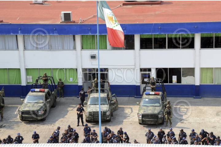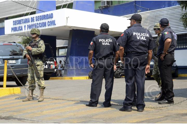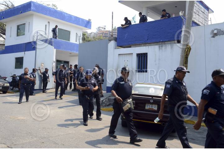 ACAPULCO, GUERRERO, 08MAYO2013.- Jesús Cortés Jiménez, Secretario de Seguridad Pública y Protección Civil, ordeno el arribo de policías federales y militares a la Secretaria de Seguridad Publica y Protección Civil para una revisión sorpresiva a elementos de la Policía Vial luego de un reporte sobre irregularidades en contra de dos elementos de la Policía Vial. Durante la revisión se encontraron credenciales de dos civiles que no son policías. El secretario de seguridad aclaró que siete comandantes del sector, no se les encontró el arma de cargo y que según ellos “olvidaron sus armas en su domicilio”. A unos policías se les retiraron las armas ya que las usaban para llevársela a su casa. Algunos de los elementos de la Policía Vial, entrevistados en las calles de este puerto, respondieron en torno a las declaraciones del Secretario de Seguridad Pública que: “el señor está actuando de mala manera ya que, a varios los está mandando a trabajar al área rural, y que, estando en ese lugar sí los atacaran y mataran el seguro de vida no se les es válido y que todo lo que está haciendo es fuera de la ley”. FOTO: BERNANDINO HERNÁNDEZ /CUARTOSCURO.COM
