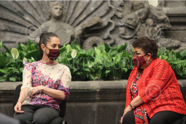 Claudia Sheinbaum, jefa de Gobierno, y Ernestina Godoy, fiscal del Gobierno del Ciudad de México, durante la ceremonia de Reconocimiento al Policía de la Ciudad de México, realizado en el Museo de la Ciudad de México