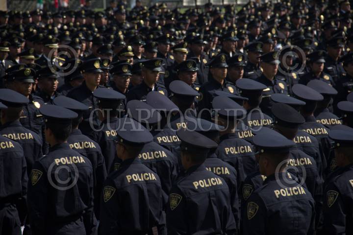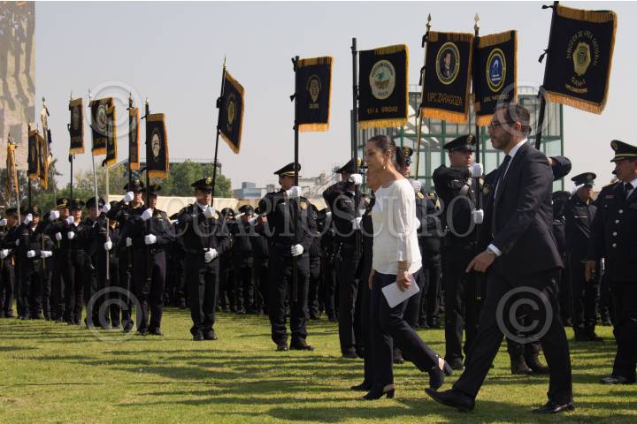 CIUDAD DE MÉXICO, 10MARZO2019.- 2 mil 540 elementos de la Secretaria de Seguridad Ciudadana se presentarón en la Toma de Protesta y el Reconocimiento del Policía del Mes en el Parque Bicentenario de la alcaldía Miguel Hidalgo, encabezada por Claudia Sheinbaum, jefa de Gobierno de la Ciudad de México. FOTO: GUADALUPE HERRERA / CUARTOSCURO.COM