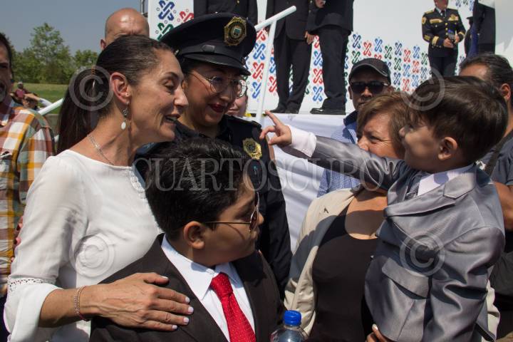 CIUDAD DE MÉXICO, 10MARZO 2019.- Claudia Sheinbaum, jefa de Gobierno, saludó a la familia de Diana Mercedes García Vázquez, Policía Segundo, al termino del evento de la Toma de Protesta de 2 mil 540 elementos de la Secretaria de Seguridad Ciudadana y el Reconocimiento del Policía del Mes en el Parque Bicentenario de la alcaldía Miguel Hidalgo. FOTO: GUADALUPE HERRERA / CUARTOSCURO.COM