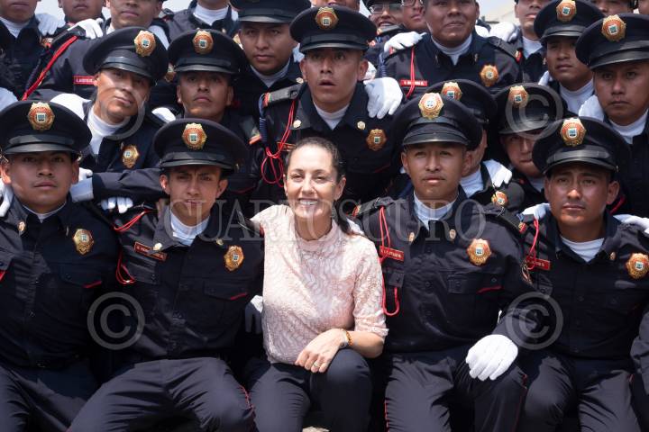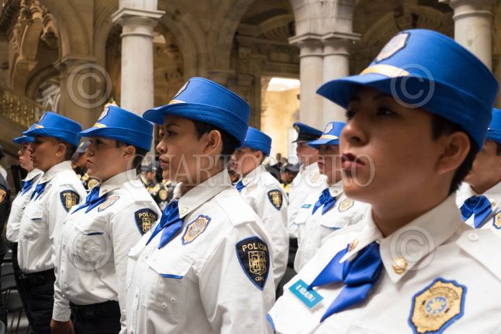 CIUDAD DE MÉXICO, 21MAYO2019.- Jesús Orta Martínez, secretario de Seguridad Pública y Claudia Sheinbaum, jefa de Gobierno, entregaron reconocimientos a los policías destacados del mes en la ceremonia "Policía del Mes". Durante el evento los policías realizaron un desfile en conmemoración a su graduación. Se realizó en la Universidad de la Policía de la Ciudad de México FOTO: GRACIELA LÓPEZ /CUARTOSCURO.COM