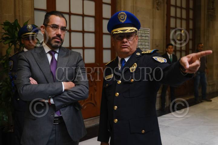 CIUDAD DE MÉXICO, 02SEPTIEMBRE2019.- Jesús Orta Martínez, secretario de Seguridad Ciudadana, durante la ceremonia del Policía del Mes Escuadrón de Rescate y Urgencias Médicas (ERUM) y condecoraciones 2019, el cual se realizó en el Antiguo Palacio del Ayuntamiento. FOTO: GRACIELA LÓPEZ /CUARTOSCURO.COM
