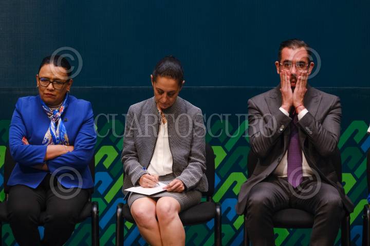 CIUDAD DE MÉXICO, 02SEPTIEMBRE2019.- Rosa Icela Rodríguez, secretaria de Gobierno; Claudia Sheinbaum, jefa de Gobierno, y Jesús Orta Martínez, secretario de Seguridad Ciudadana, durante la ceremonia del Policía del Mes Escuadrón de Rescate y Urgencias Médicas (ERUM) y condecoraciones 2019, el cual se realizó en el Antiguo Palacio del Ayuntamiento. FOTO: GRACIELA LÓPEZ /CUARTOSCURO.COM
