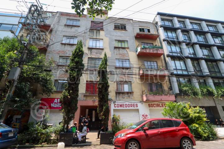 CIUDAD DE MÉXICO, 26AGOSTO2025.- Aspectos del desalojo realizado por policías capitalinos en un edificio ubicado en Tonalá 125, esquina con Guanajuato, en la colonia Roma. Varias familias fueron desalojadas; los afectados aseguraron que no se presentó ninguna orden legal. Durante el operativo, un hombre fue detenido por presuntamente tener una orden de aprehensión. FOTO: ROGELIO MORALES / CUARTOSCURO.COM
