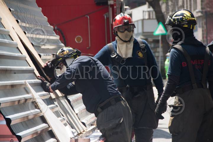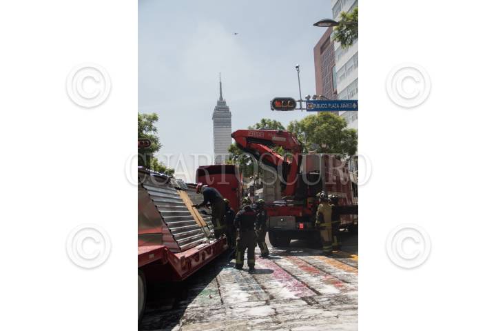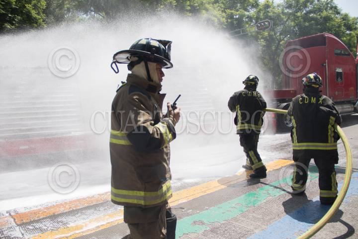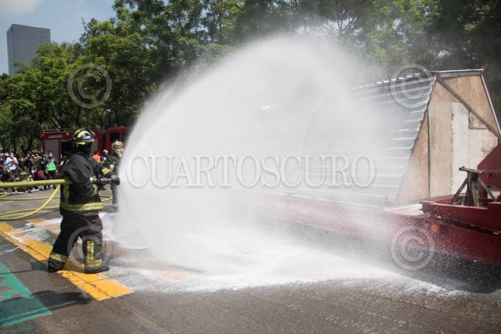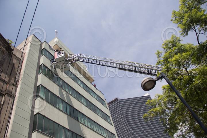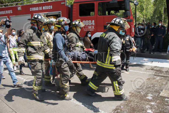 Simulacro de incendio y rescate del H. Cuerpo de Bomberos en la avenida Juárez