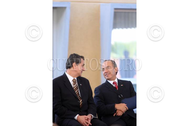 SAN LUIS POTOSI, SAN LUIS POTOSI, 19SEPTIEMBRE2008.- El presidente de México, Felipe Calderon Hinojosa, durante la inaguración del nuevo campus de la Universidad Politecnica de San Luis Potosi "primera etapa", que se llevó acabo en la en la misma Universidad. En la imagen junto con el secretario de la SEMARNAT; Juan Rafael Elvira Quesada. FOTO: ALFREDO GUERRERO/CUARTOSCURO.COM