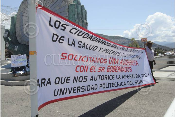 CHILPANCINGO, GUERRERO, 23MARZO2015.- Habitantes de Buena Vista de la Salud, protestaron en la entrada del Palacio de Gobierno, para exigirle al gobernador Rogelio Salvador Ortega Martínez, les apoye en la apertura de la “Universidad Politécnica del Sur” que ayudará al desarrollo profesional de los habitantes de la comunidad y de las localidades circunvecinas. FOTO: JOSÉ I.HERNÁNDEZ / CUARTOSCURO.COM
