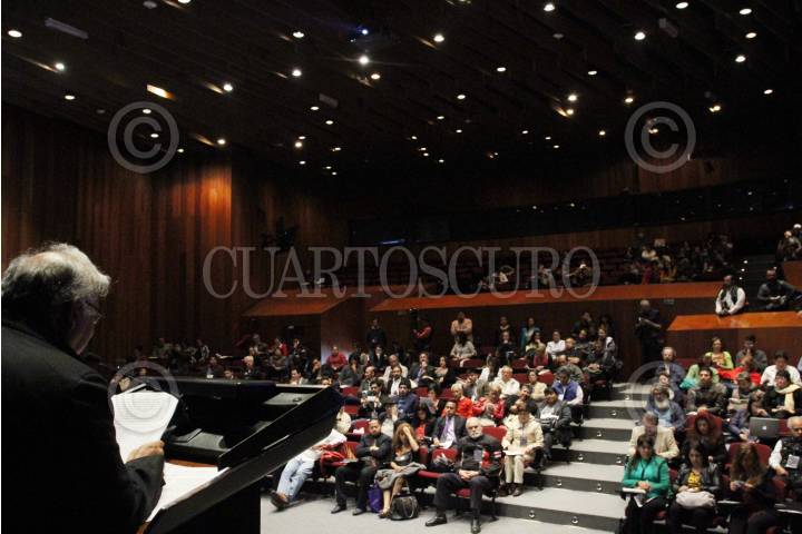 CIUDAD DE MÉXICO, 18MAYO2016.- Integrantes de diversas organizaciones estudiantiles, magisteriales, académicas y sociales, asistieron a la inauguración del Primer Foro Deliberativo de la UNAM, que se realizó en el Auditorio Alfonso Caso de Ciudad Universitaria. La primer mesa debatió en torno a temas de derechos humanos. FOTO: MARÍA JOSÉ MARTÍNEZ /CUARTOSCURO.COM