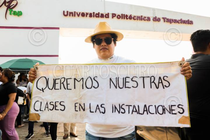TAPACHULA, CHIAPAS. 17ENERO2024.- Alumnos y catedráticos de la Universidad Politécnica de Tapachula inician paro de labores, exigen al Gobierno de Chiapas que sus demandas sean escuchadas. El despido injustificado de 40 catedráticos origino Este movimiento, demanera arbitraria fueron suspendidos. acusan al director Jhonny Robert Mis May por la presunta corrupción. FOTO: DAMIÁN SÁNCHEZ/CUARTOSCURO.COM