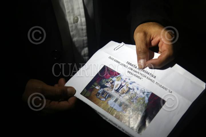CUERNAVACA, MORELOS, 25JUNIO2019. Una denuncia de hechos se interpuso este martes ante la Fiscalía General del Estado por el intento de apostillar la obra "La mesa herida" de Frida Kahlo. La obra desapareció en el año 1955 en Varsovia, capital de Polonia durante una exposición dedicada a la afamada pintora mexicana y está valuada en 20 millones de dólares. El subsecretario de Gobierno, José de Jesús Guízar Nájera acudió a las instalaciones de la Fiscalía y narró que un hombre presentó documentación sobre la obra en un intento de obtener la apostilla para sacarla del país. El movimiento de compra-venta se habría realizado en la notaría pública de Jiutepec, a cargo del notario público Marcelino Fernández Urquiza, y cuyo pago por la obra sería una residencia ubicada en el puerto de Acapulco, Guerrero. Por la relevancia de la obra, el hombre fue detenido por elementos de la Comisión Estatal de Seguridad y se dará parte de ello tanto al FBI como a la Interpol. El cuadro “La mesa herida” es la obra más grande que produjo Frida Kahlo y también su pieza más buscada en la actualidad, afirmó el año pasado la investigadora del Instituto Iberoamericano de Berlín, Helga Prignitz durante una conferencia que impartió en la UNAM.. FOTO: MARGARITO PÉREZ RETANA /CUARTOSCURO.COM