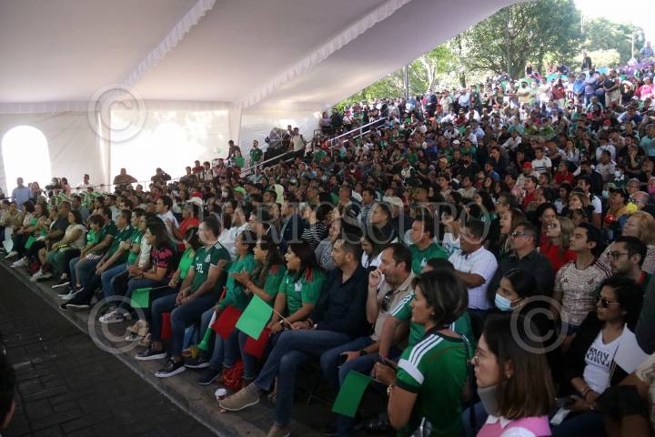 Cientos de aficionados del fútbol se reunieron en el zocalo de la capital para ver el partido de fútbol México vs Polonia, el cual terminó en empate.