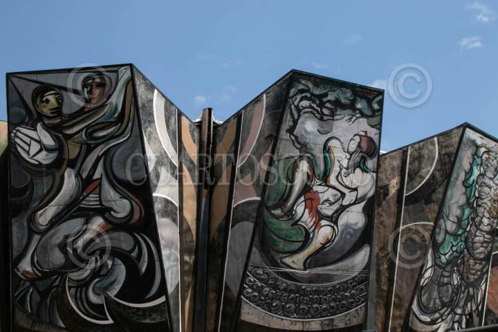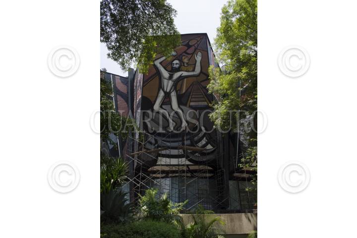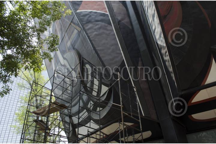 CIUDAD DE MÉXICO, 13FEBRERO2024.- El proyecto y rescate del Polyforum Siqueiros sigue varado desde hace varios años, mientras que desde el exterior se observa el deterior de los murales que son característicos de esta obra. FOTO: MOISÉS PABLO/CUARTOSCURO.COM