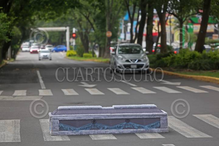 Vecinos de El Salto, Juanacatlán, Poncitlán, así como representantes de algunos grupos ambientalistas colocaron un féretro en plena avenida Manuel Acuña, esto como protesta por la contaminación y muertes que esta causa en la Cuenca Lerma-Chapala-Santiago.