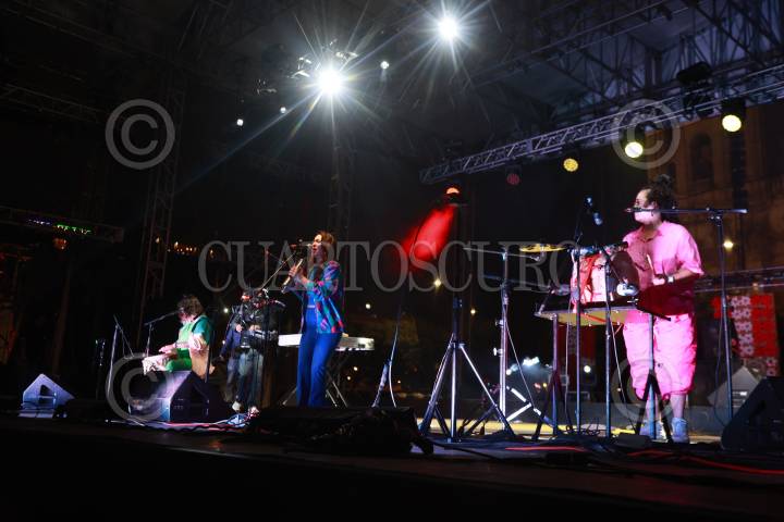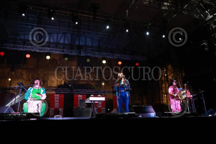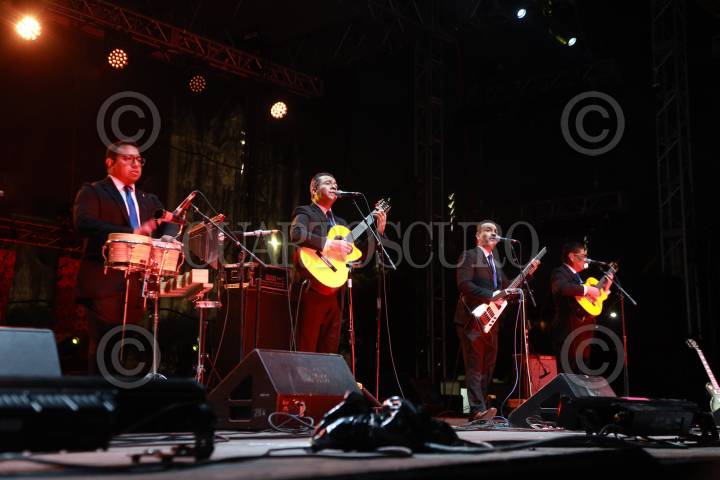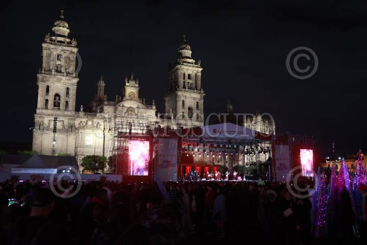 CIUDAD DE MÉXICO, 22DICIEMBRE2024. Presentación de la agrupación colombiana La Perla en el escenario principal de la Verbena popular en el zócalo capitalino. FOTO: EDGAR NEGRETE LIRA/CUARTOSCURO.COM