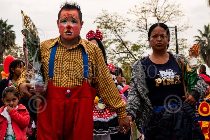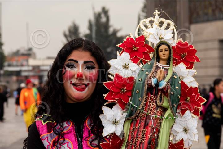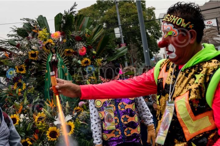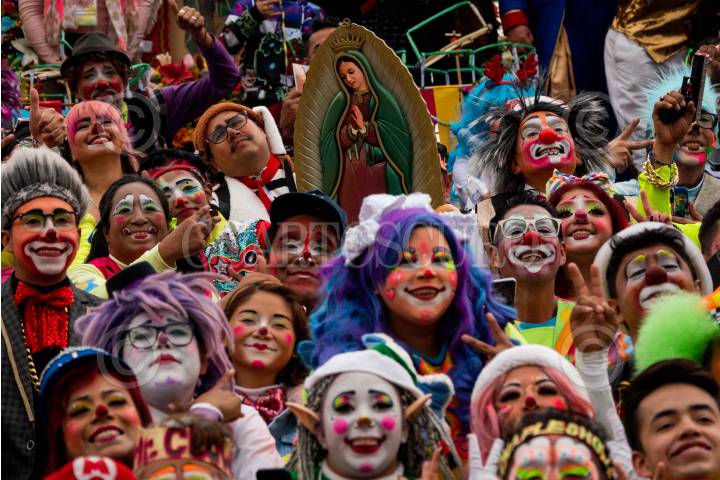 CIUDAD DE MÉXICO, 13DICIEMBRE2023.- Payasos que integran el Grupo Metropolitano de Payasos A.C. (GRUMEPAC) realizaron su tradicional peregrinación anual desde la Glorieta de Peralvillo, alcaldía Cuauhtémoc, hasta la Basílica de Guadalupe, en Gustavo A. Madero. Esto con motivo de dar gracias por el año transcurrido y celebrar a la Virgen de Guadalupe de quienes son devotos. FOTO: GALO CAÑAS/CUARTOSCURO.COM