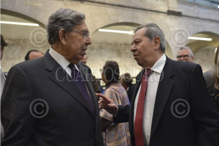 CIUDAD DE MÉXICO, 07FEBRERO2016.- Cuauhtémoc Cádernas y Porfirio Muñoz Ledo, fundadores del Partido de la Revolución Democrática PRD, durante el Foro "#5F17 Hacia una nueva constitución" como parte del aniversario de la Promulgación de la Constitución de los Estado Unidad Mexicanos de 1917, realizado el edificio de Xicoténcatl, Antigua sede del Senado. FOTO: ADOLFO VLADIMIR /CUARTOSCURO.COM
