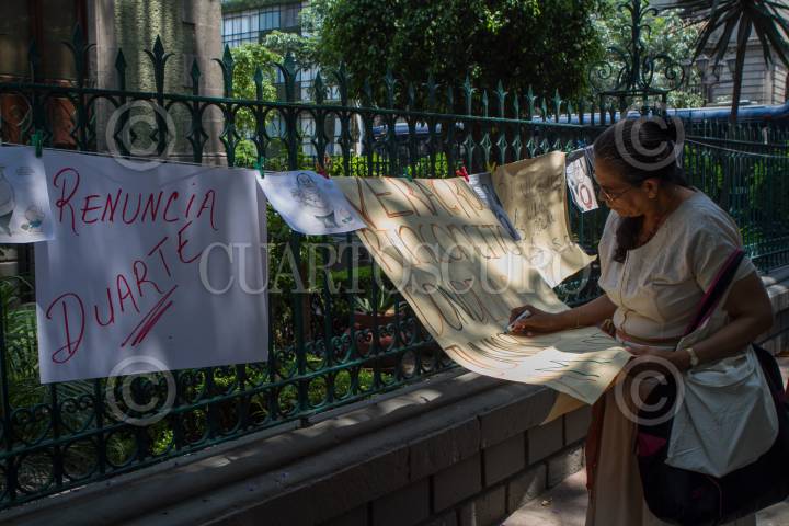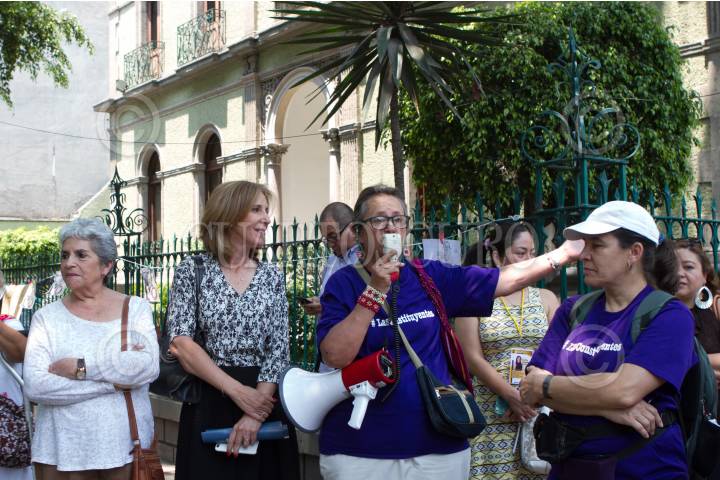 CIUDAD DE MÉXICO, 11ABRIL2016.- Un grupo de ciudadanas se manifestaron afuera de la representación del gobierno de Veracruz, ubicado en la calle de Marsella en la colonia Juárez, para exigir justicia en el caso de los "Porkys", donde cuatro jóvenes son señalados de violar a la joven Daphne Fernández, en Veracruz. Los hechos ocurrieron hace más de un año cuando la estudiante de la Universidad del Valle de México fue alcoholizada, violada y grabada en video, uno se los supuestos agresores es hijo de Rafael Cruz Hernández, director de la Pesca y Acuacultura del gobierno de Javier Duarte de Ochoa, los otros tres participante en la agresión son hijos de prominentes empresario del estado. El padre de la víctima ha denunciado que la Fiscalía General del Estado no impartido justicia debido a las relaciones políticas del padre de uno de los implicados. En la imagen se aprecia a María Elena Morera y Adriana Luna Parra. FOTO: MOISÉS PABLO /CUARTOSCURO.COM