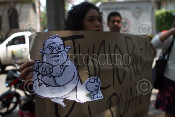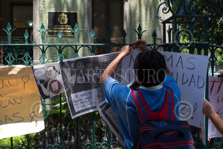 CIUDAD DE MÉXICO, 11ABRIL2016.- Un grupo de ciudadanas se manifestaron afuera de la representación del gobierno de Veracruz, ubicado en la calle de Marsella en la colonia Juárez, para exigir justicia en el caso de los "Porkys", donde cuatro jóvenes son señalados de violar a la joven Daphne Fernández, en Veracruz. Los hechos ocurrieron hace más de un año cuando la estudiante de la Universidad del Valle de México fue alcoholizada, violada y grabada en video, uno se los supuestos agresores es hijo de Rafael Cruz Hernández, director de la Pesca y Acuacultura del gobierno de Javier Duarte de Ochoa, los otros tres participante en la agresión son hijos de prominentes empresario del estado. El padre de la víctima ha denunciado que la Fiscalía General del Estado no impartido justicia debido a las relaciones políticas del padre de uno de los implicados. FOTO: MOISÉS PABLO /CUARTOSCURO.COM