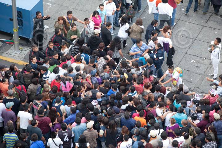 MÉXICO, D.F.10MAYO2012.- Asistentes al concierto de Paul Mac Cartney, exintegrante de los Beatles, quien ofreció hoy un concierto gratuito en la plancha del Zócalo Capitalino. Al inicio varias personas entraron a lugares restringidos dando portazo. FOTO: JUAN PABLO ZAMORA /CUARTOSCURO.COM