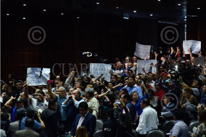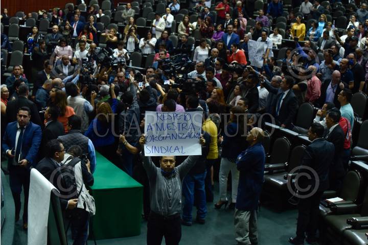Integrantes del Sindicato de Trabajadores de la Cámara de Diputados interrumpieron la sesión ordinaria como protesta por una iniciativa presentada por el Partido del Trabajo (PT) la cual impediría que los trabajadores propusieran a personal para ocupar las plazas nuevas.
