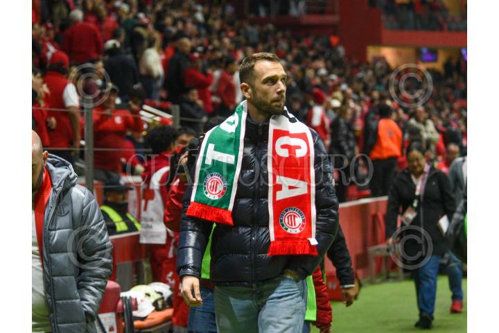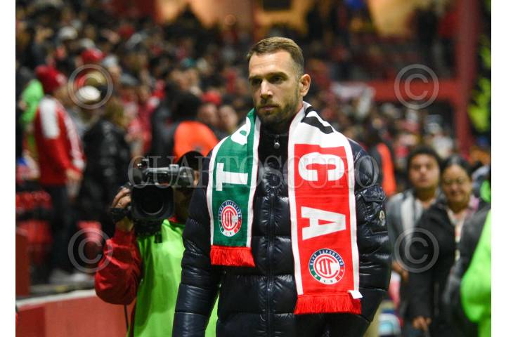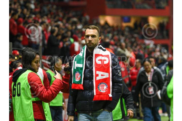TOLUCA, ESTADO DE MÉXICO, 01FEBRERO2025.- Pau López, portero español salió a la cancha del estadio Nemesio Diez a saludar a la afición choricera durante el medio tiempo del encuentro ante Tigres, será el nuevo arquero de la escuadra escarlata para enfrentar el Clausura 2025 de la Liga MX. FOTO: CRISANTA ESPINOSA AGUILAR /CUARTOSCURO.COM
