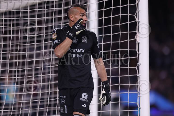 CIUDAD DE MÉXICO, 07DICIEMBRE2023. Nahuel Guzmán portero de Tigres durante el partido de fútbol Pumas vs Tigres correspondiente a la semifinal de ida del Torneo Apertura 2023 de Liga BBVA MX, en el Estadio Olímpico Universitario. FOTO: EDGAR NEGRETE/CUARTOSCURO.COM